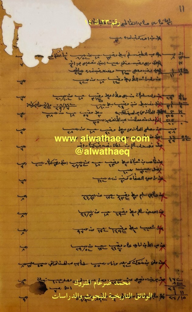 كشف حساب سنة ١٣٣٤ هـ – ١٩١٥ م من دفاتر التاجر محمد بن عبدالله المتروك الاسماء التي ذكرت🚩: عبدالعزيز بوعباس / خالد العسعوسي / عبدالحسين / عبدالله بن سالم العبدالجادر / بوزيدان / ابراهيم بن شايع / عبدالله بن عيسى الطراروه / احمد بن علي بن حلبوج / عيسى بن عصفور / بو مزيعل / محمد بن رومي رجال هلال / جاسم بن مطر / معيوف البدر / سعد اخو ناهض / ابراهيم الخضير / احمد بن فرحان
