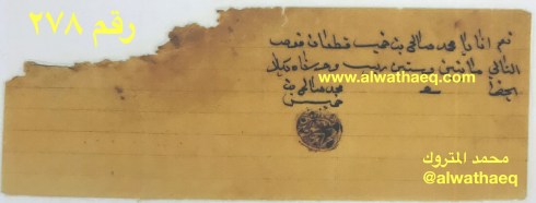 نعم انا يا محمد صالح بن خميس قطعان قوص التالي مايتين وستين ربيه وحرماه كيلا يخفى (ختم محمد بن خميس)