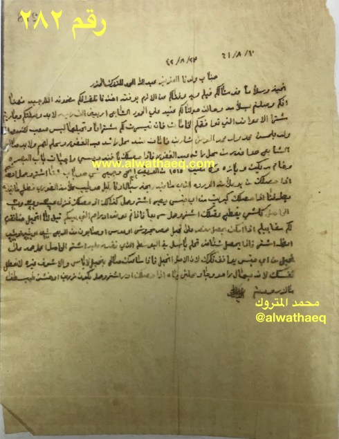 الحاج محمد المتروك يوصي ابنه ان يشتري بعض البضايع من بومبي ومن هذه البضايع الأقمشة ويطلب منه ان يشتري من محل راشد العبدالغفور والحاج راشد من التجار الكويتيين المعروف في تجارة الأقمشة وكان له محل في الهند تحديداً في بومبي ، وأرسل له حواله ٤٠،٠٠٠ الف ربيه عن طريق علي الحمود الشايع ، وبعد توصيته ان يشتري البضايع المطلوبه يوصيه بان يشتري اَي جنس من أجناس البضايع آلتي توافق فكره وما يراه مناسباً