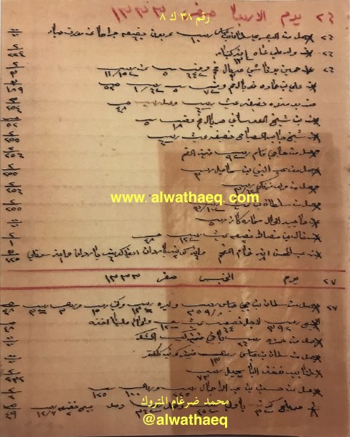 كشف حساب سنة ١٩١٥ م