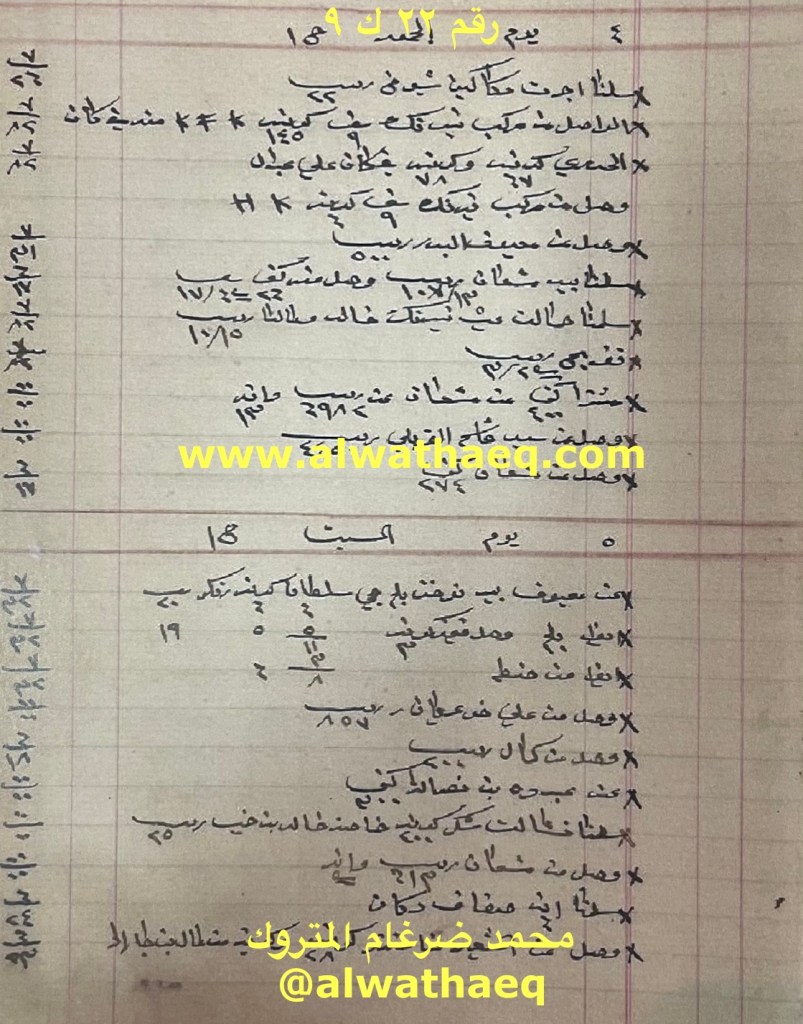 من دفاتر التاجر محمد بن عبدالله المتروك