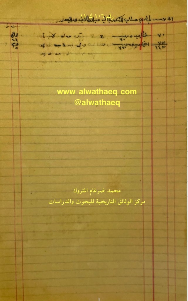 من دفاتر التاجر محمد بن عبدالله المتروك