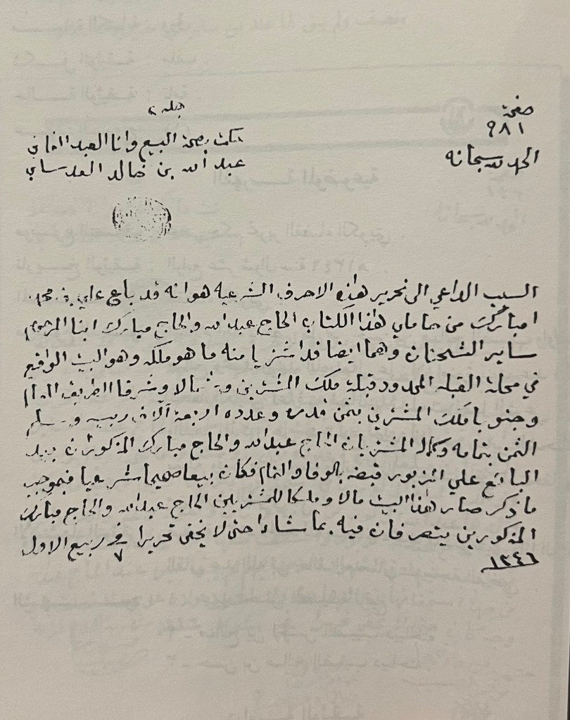 المشتري : الحاج عبدالله والحاج مبارك ابنا المرحوم ساير الشحنان
