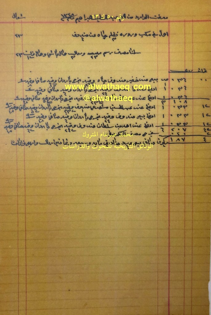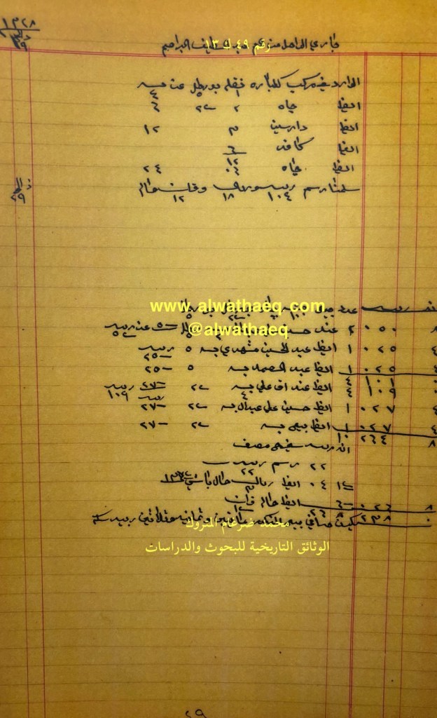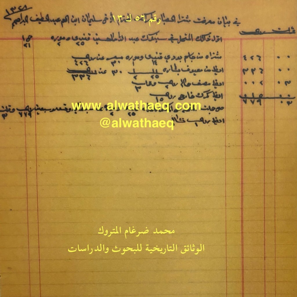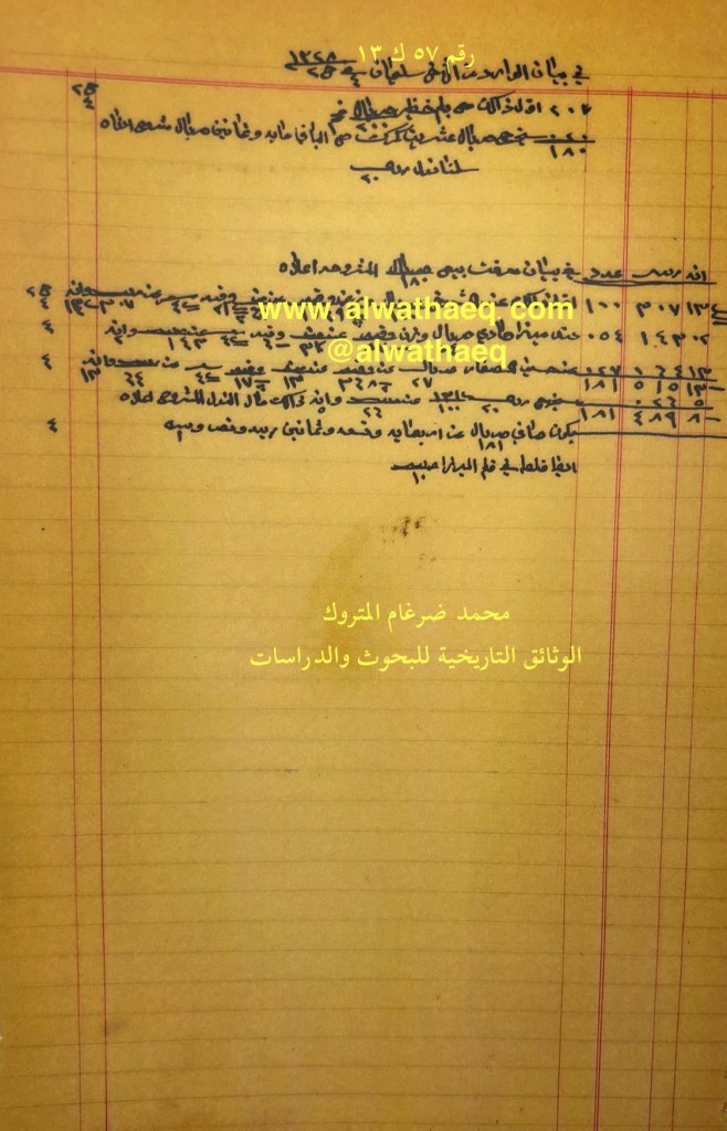 كشف حساب سنة ١٣٢٨هـ – ١٩١٠م من دفاتر التاجر محمد بن عبدالله المتروك