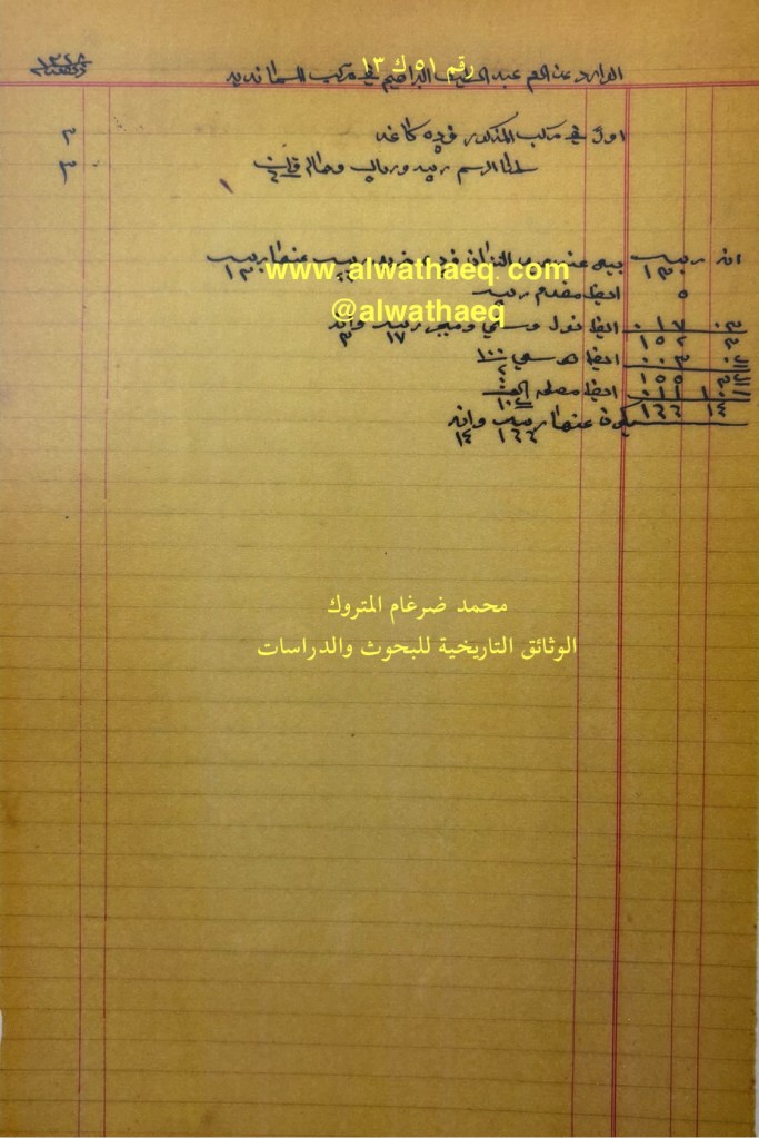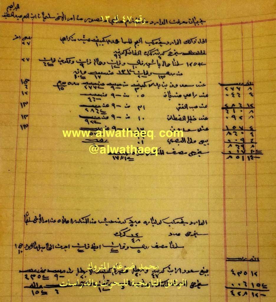 وثيقة رقم ( ٤٧ ك ١٣ )🚩: . ✏️شرح وتعليق / محمد ضرغام المتروك . الوثائق التاريخية للبحوث والدراسات