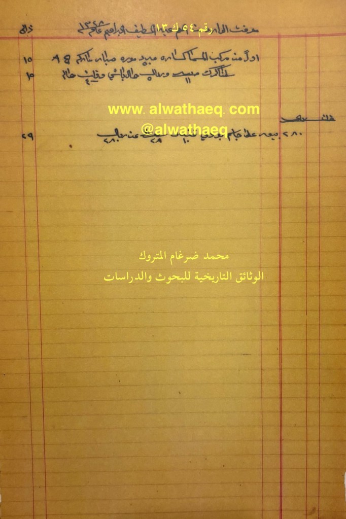 مضمون الرسالة🚩: معاملات تجارية في المواد الاستهلاكية وشراكة بين الحاج محمد المتروك وعبداللطيف الابراهيم