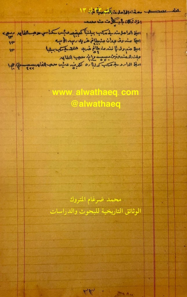 وثيقة رقم ( ٣٢ ك ١٣ )🚩: . ✏️شرح وتعليق / محمد ضرغام المتروك