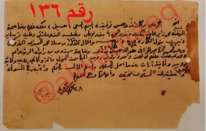 عبدالله البدر يبلغ ميرزا لاري ان يقبض من الحاج محمد المتروك مبلغ ٨٤٠٠ ريال إيراني ، وان المبلغ لحساب شيخ رحمة الله الانصاري المقيم في الشارجة