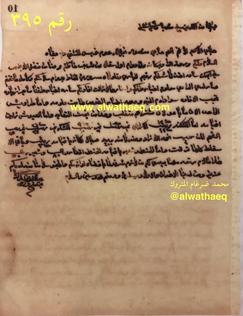 ومنها الحاج محمد المتروك يخبره بحال أسعار السلع من ارتفاع ونزول وعن أخبار اهل الغوص و الطواويش ومن جملة ما قال :