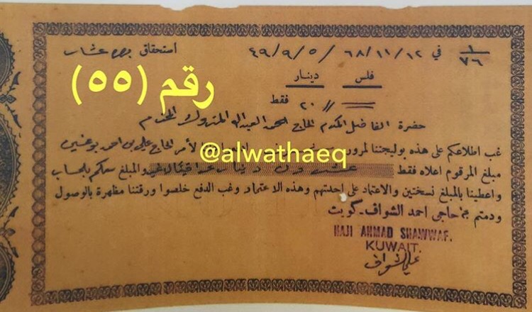 حوالة ، ويبدو بالحوالة ختم حاجي احمد الشواف