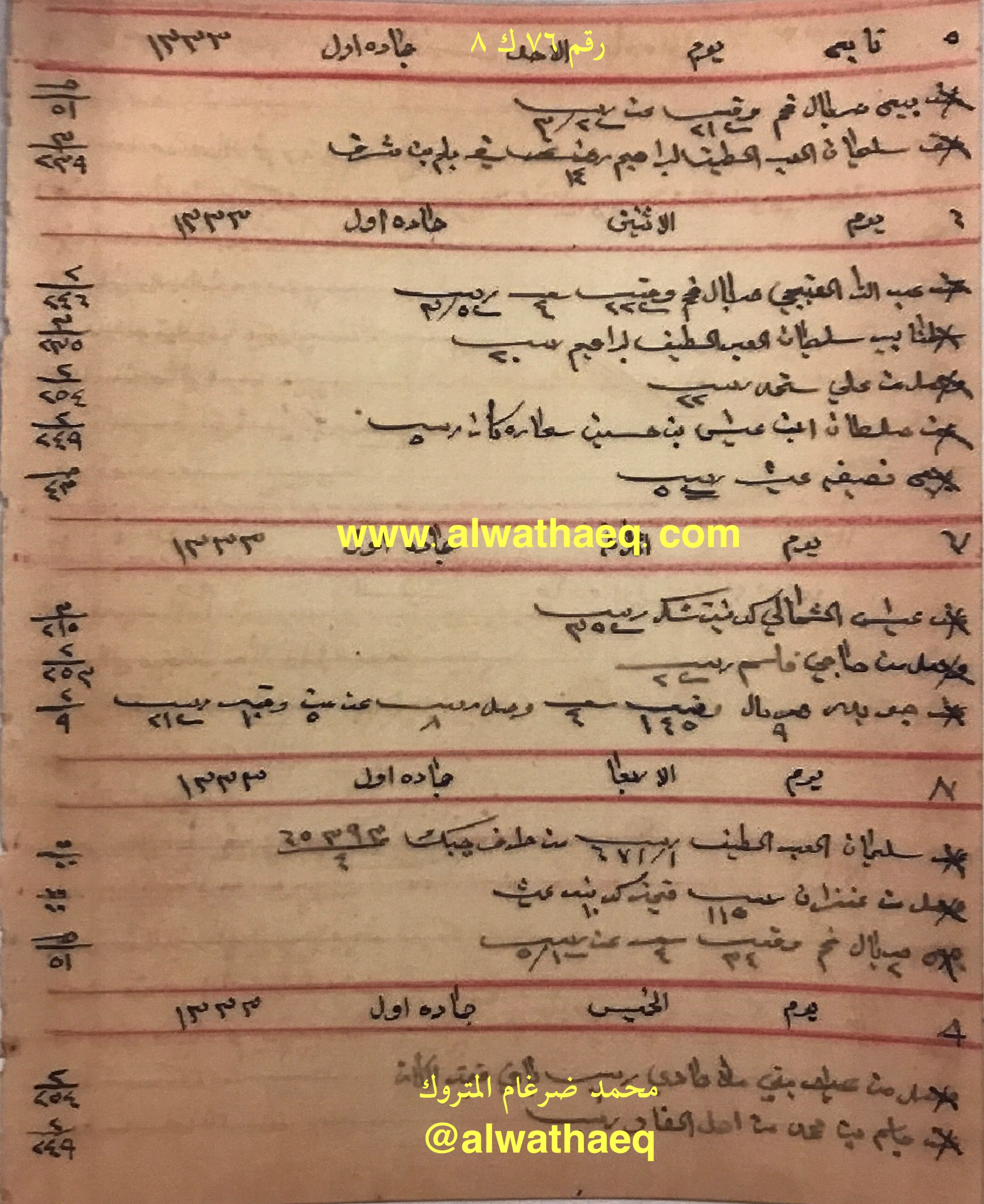معاملات تجارية بين التاجر محمد عبدالله المتروك وجاسم المرزوق
