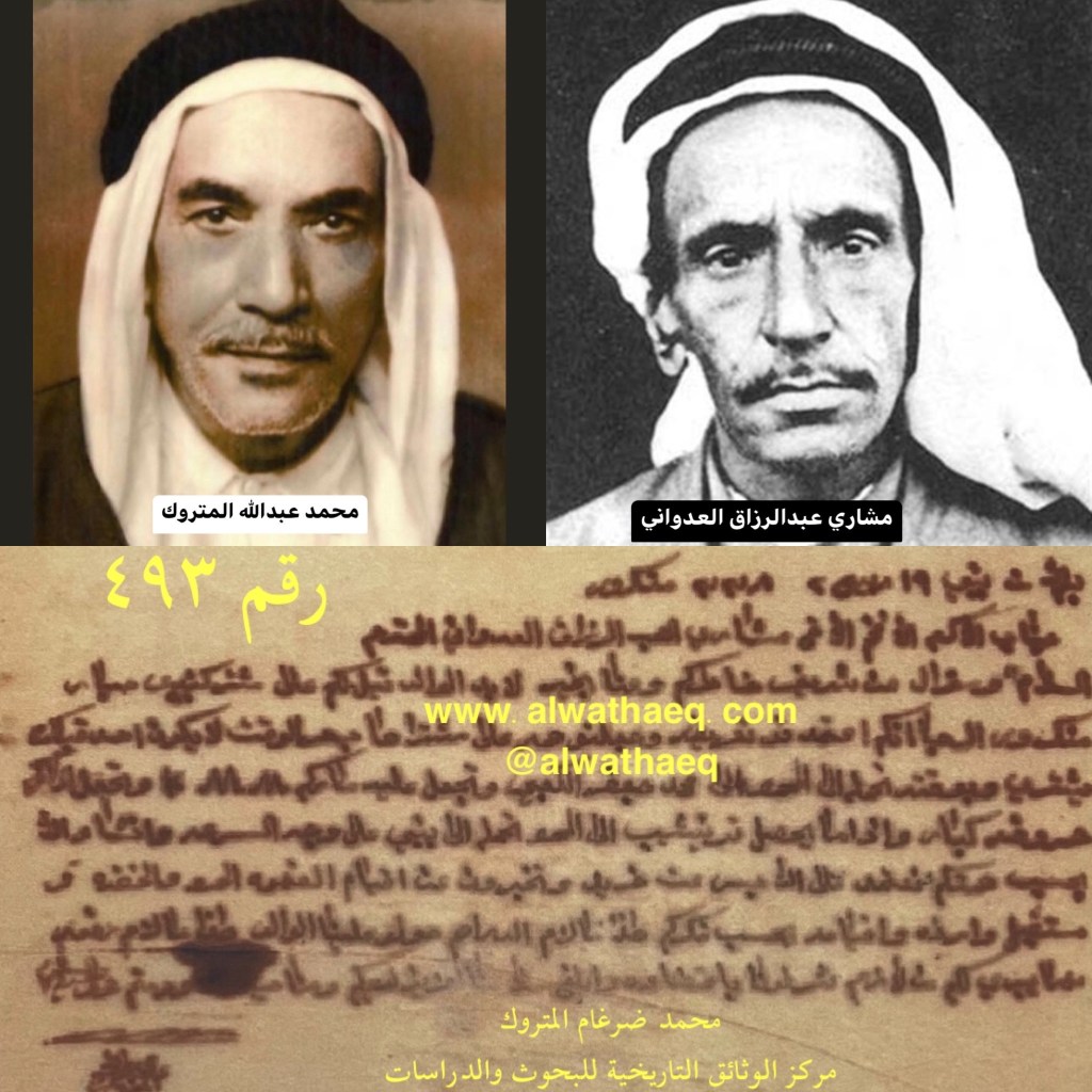 وثيقة رقم( ٤٩٣ )🚩: . ✏️شرح وتعليق / محمد ضرغام المتروك . الوثائق التاريخية للبحوث والدراسات