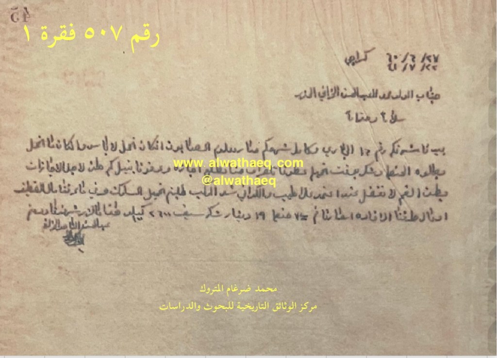 وثيقة رقم( ٥٠٧ فقرة ١ )🚩: . ✏️شرح وتعليق / محمد ضرغام المتروك . الوثائق التاريخية للبحوث والدراسات