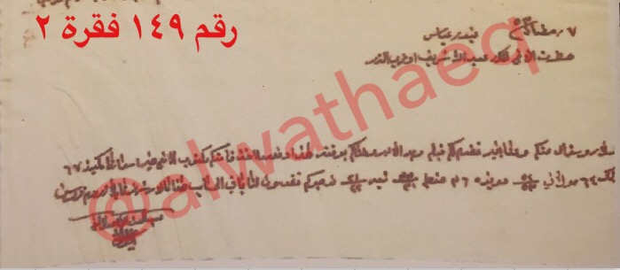 ثم يبلغه بان شريكه علي الحمود الشايع سيرسل له ٤٥٠ صندوق شاي ناعم من محل الشايع ويطلب منه الحاج محمد تصريف البضاعة فان لم يجد لها يرسلها له الى البصرة واذا صعب تحميله مباشره الى البصرة يحملها عن طريق دبي مع السفن والمراكب عن طريق الحاج يوسف وعبداللطيف المهيدب