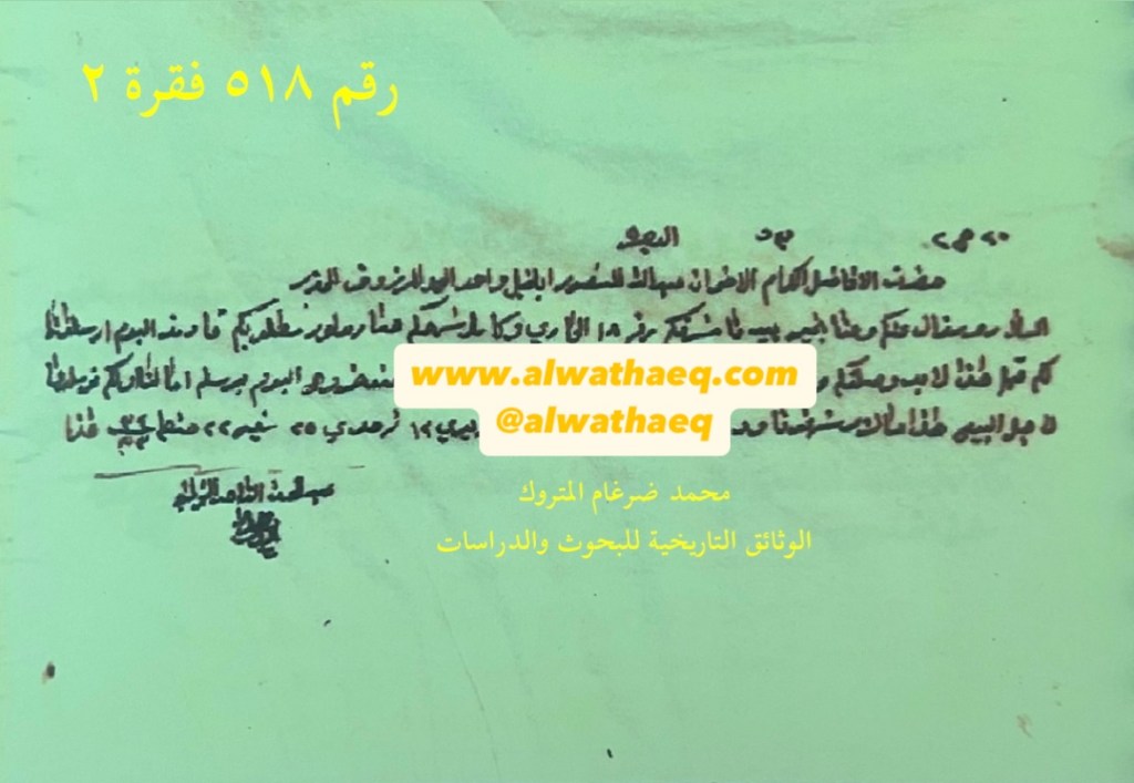 وثيقة رقم( ٥١٨ فقرة ٢ )🚩: . ✏️شرح وتعليق / محمد ضرغام المتروك . الوثائق التاريخية للبحوث والدراسات