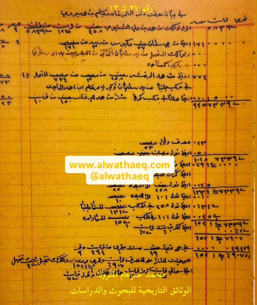 وثيقة رقم ( ٢٧ ك ١٣ )🚩: . ✏️شرح وتعليق / محمد ضرغام المتروك . الوثائق التاريخية للبحوث والدراسات