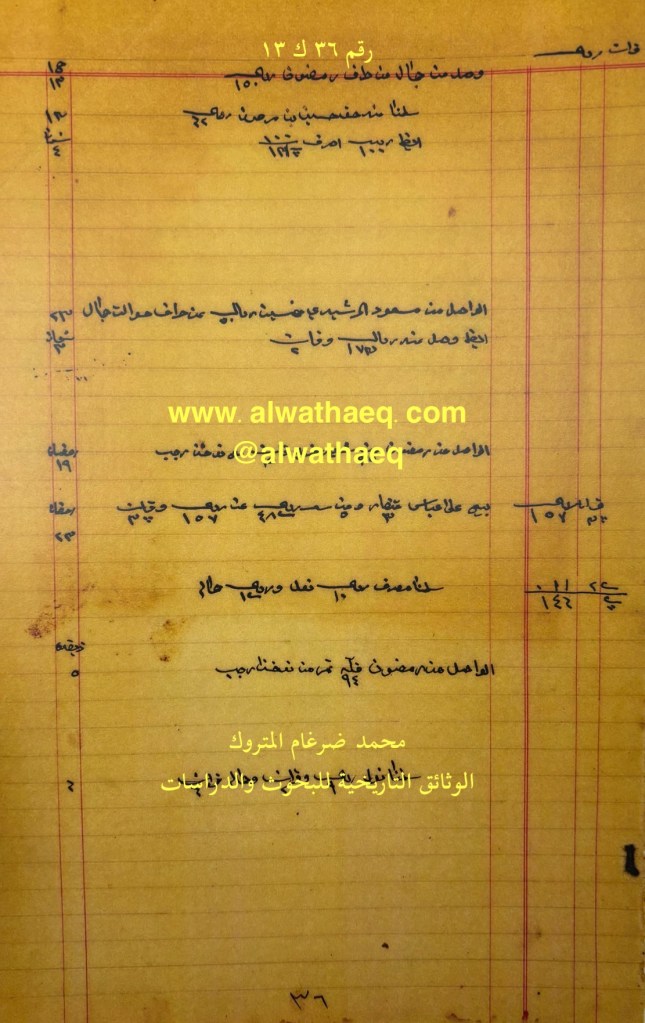 وثيقة رقم ( ٣٦ ك ١٣ )🚩: . ✏️شرح وتعليق / محمد ضرغام المتروك . الوثائق التاريخية للبحوث والدراسات