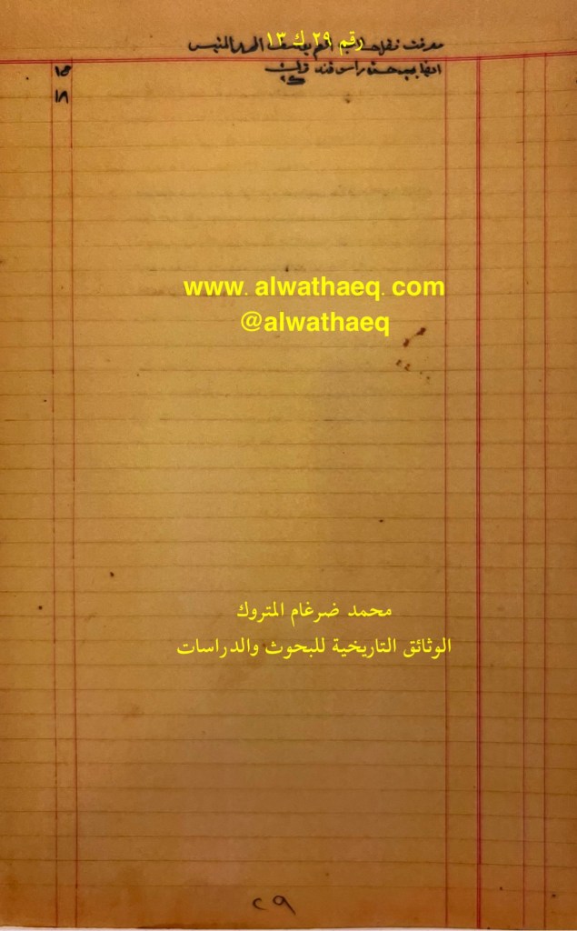وثيقة رقم ( ٣٠ ك ١٣ )🚩: . ✏️شرح وتعليق / محمد ضرغام المتروك . الوثائق التاريخية للبحوث والدراسات