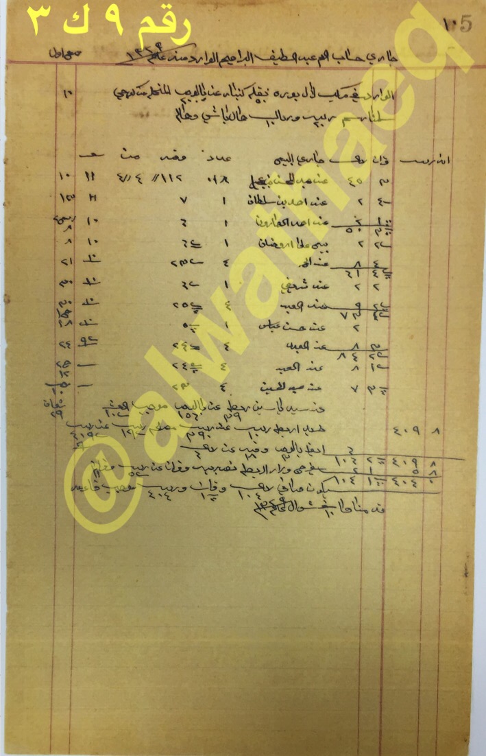 كشف حساب سنة ١٩١١ م