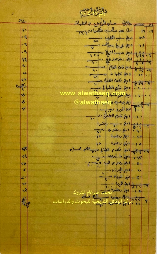 كشف حساب سنة ١٩١٣ م من دفاتر التاجر محمد بن عبدالله المتروك