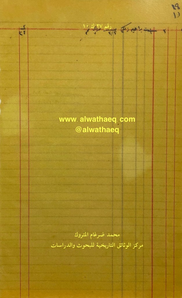 وثيقة رقم ( ٢٠ ك ١٠ )🚩: . ✏️شرح وتعليق / محمد ضرغام المتروك . الوثائق التاريخية للبحوث والدراسات