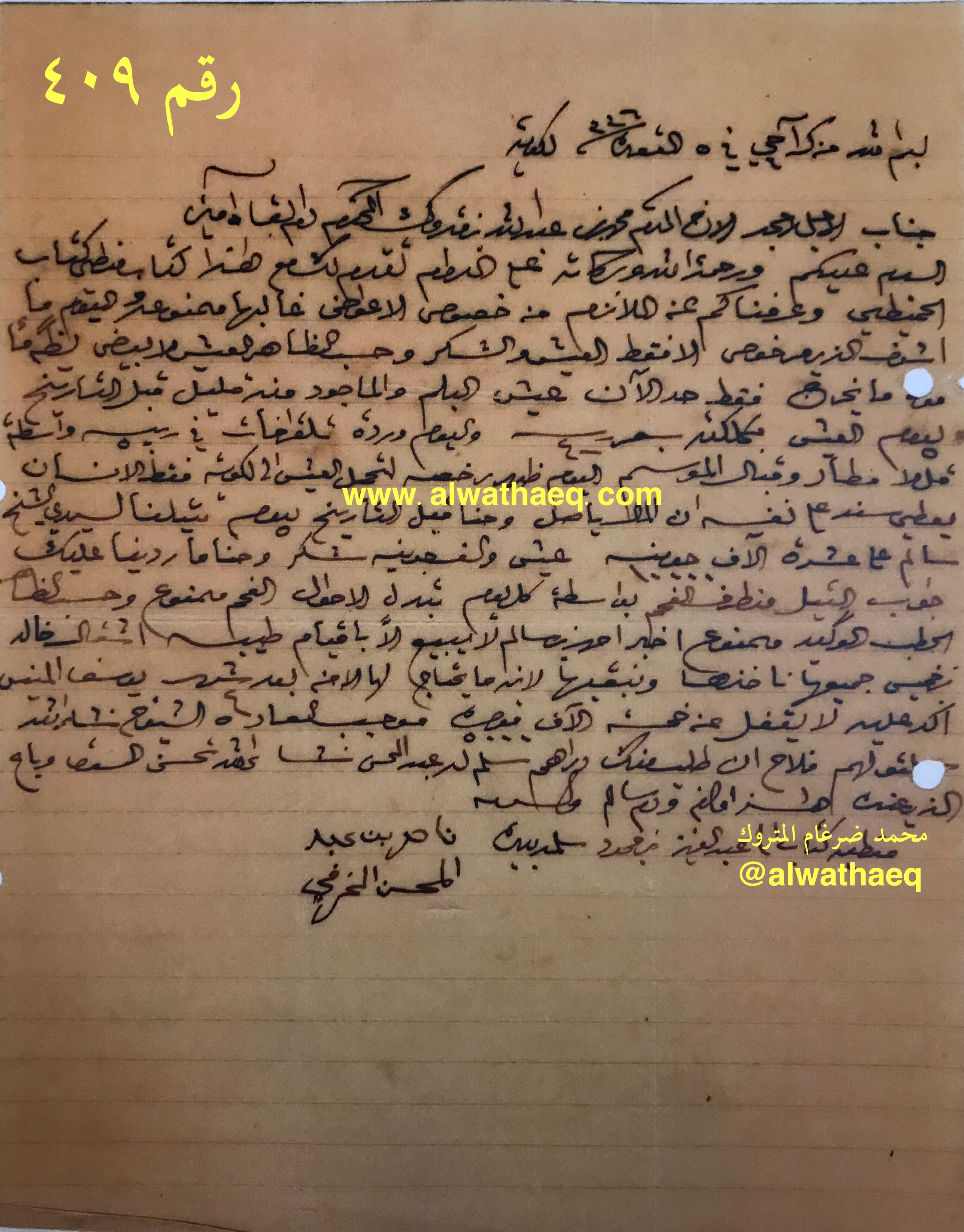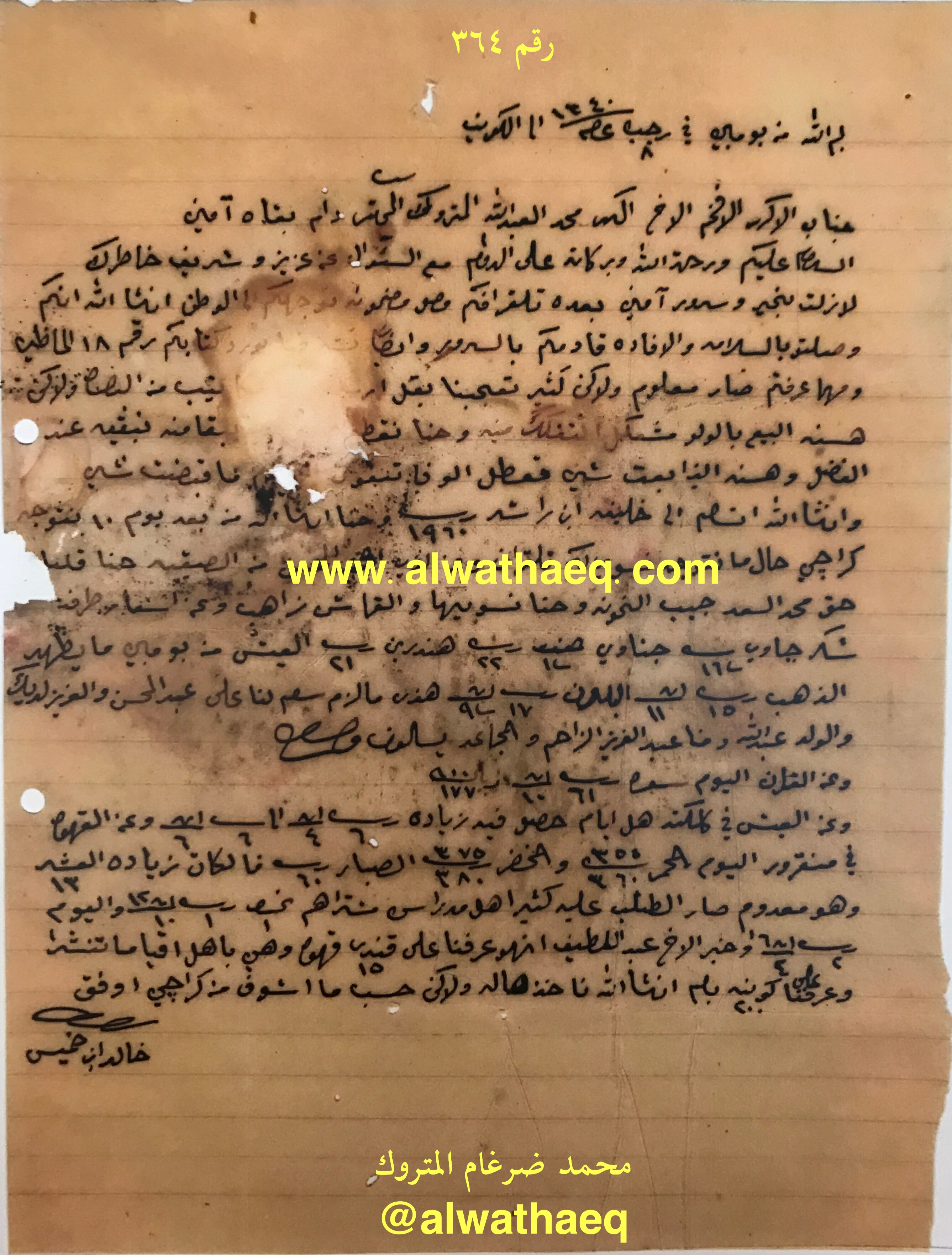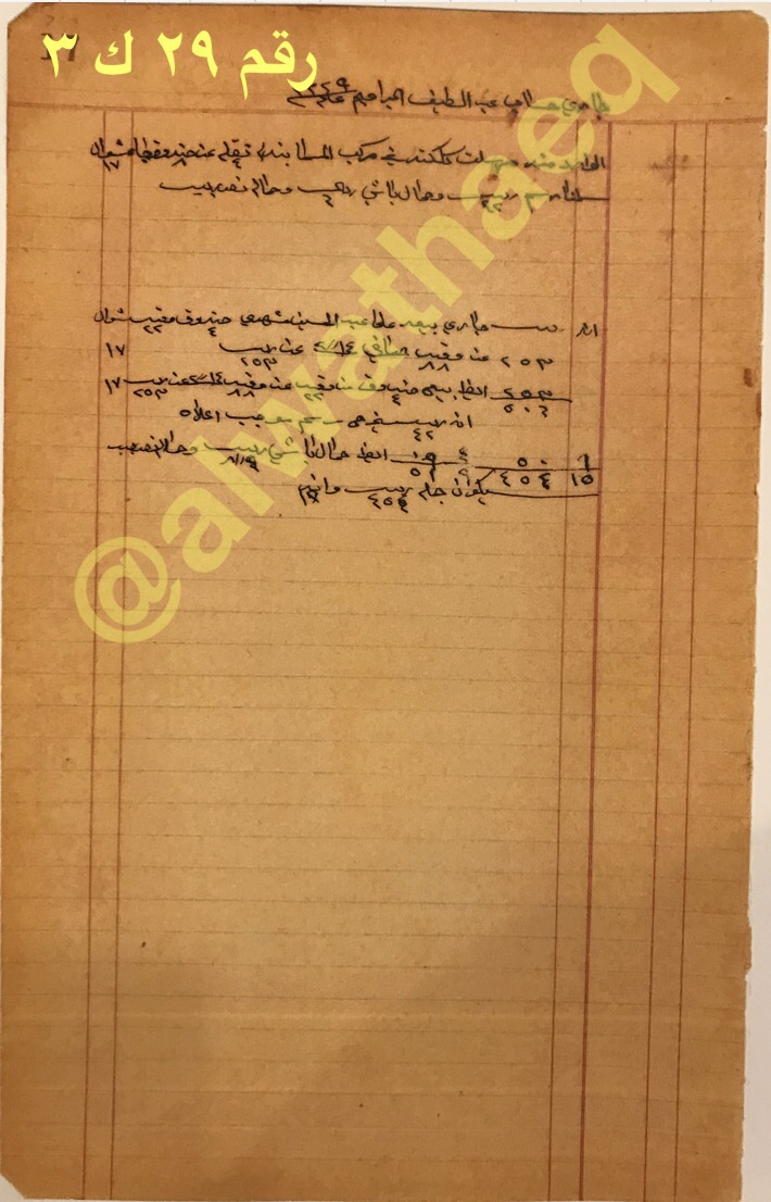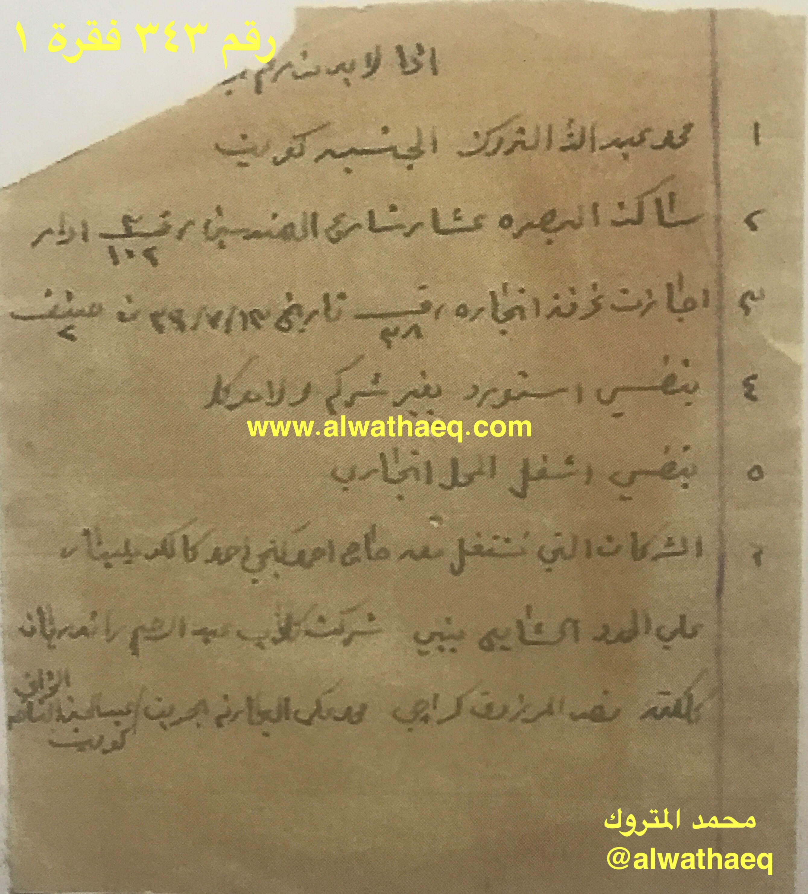 ومنها الحاج محمد المتروك يجيبهم بما ذكروا من نقصان أطوال صناديق الاقمشة انه لاحظ ذلك وانه ناشئ من تحميله الى بغداد بالقطار ومن الجمرك ايضا