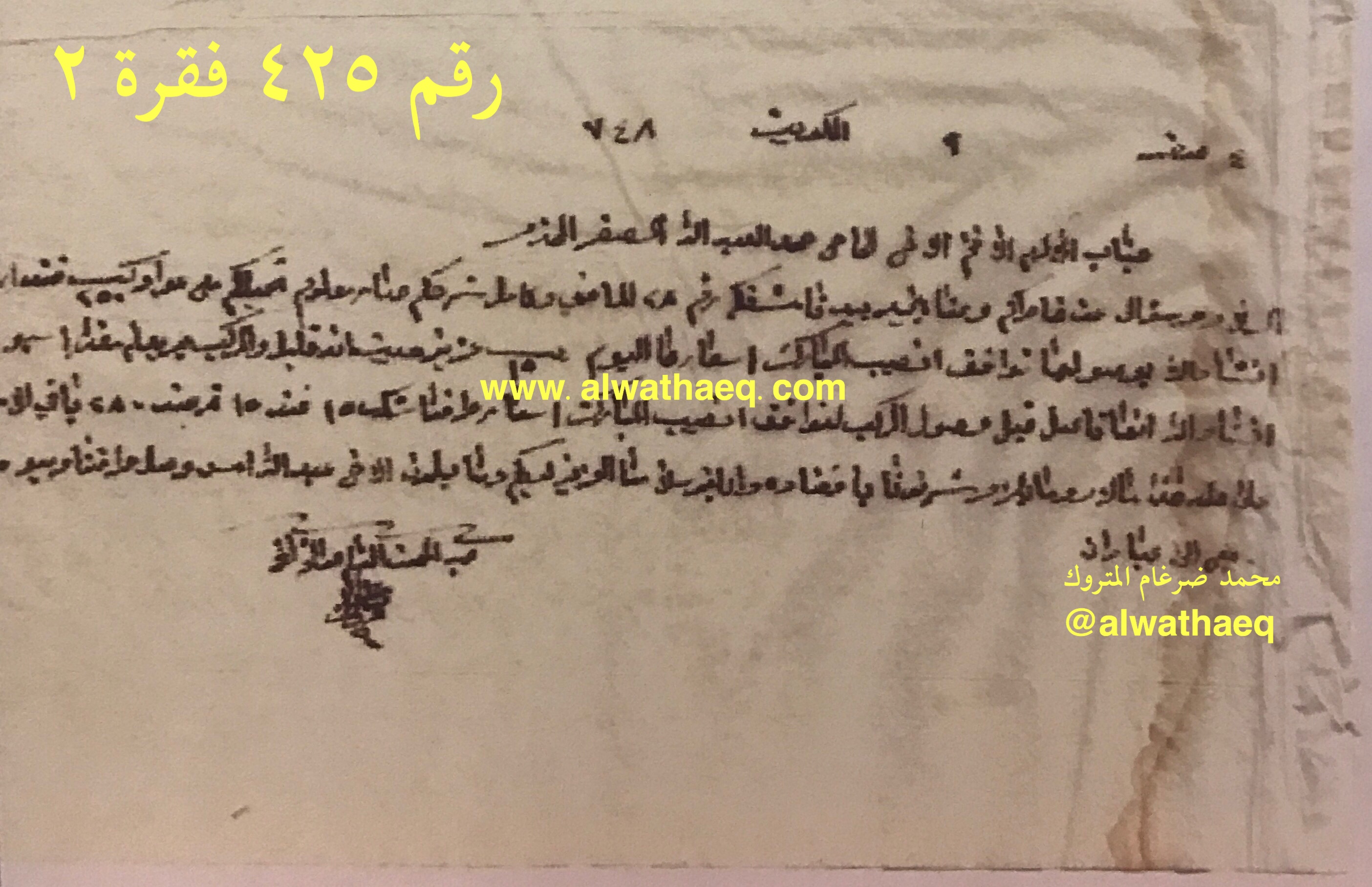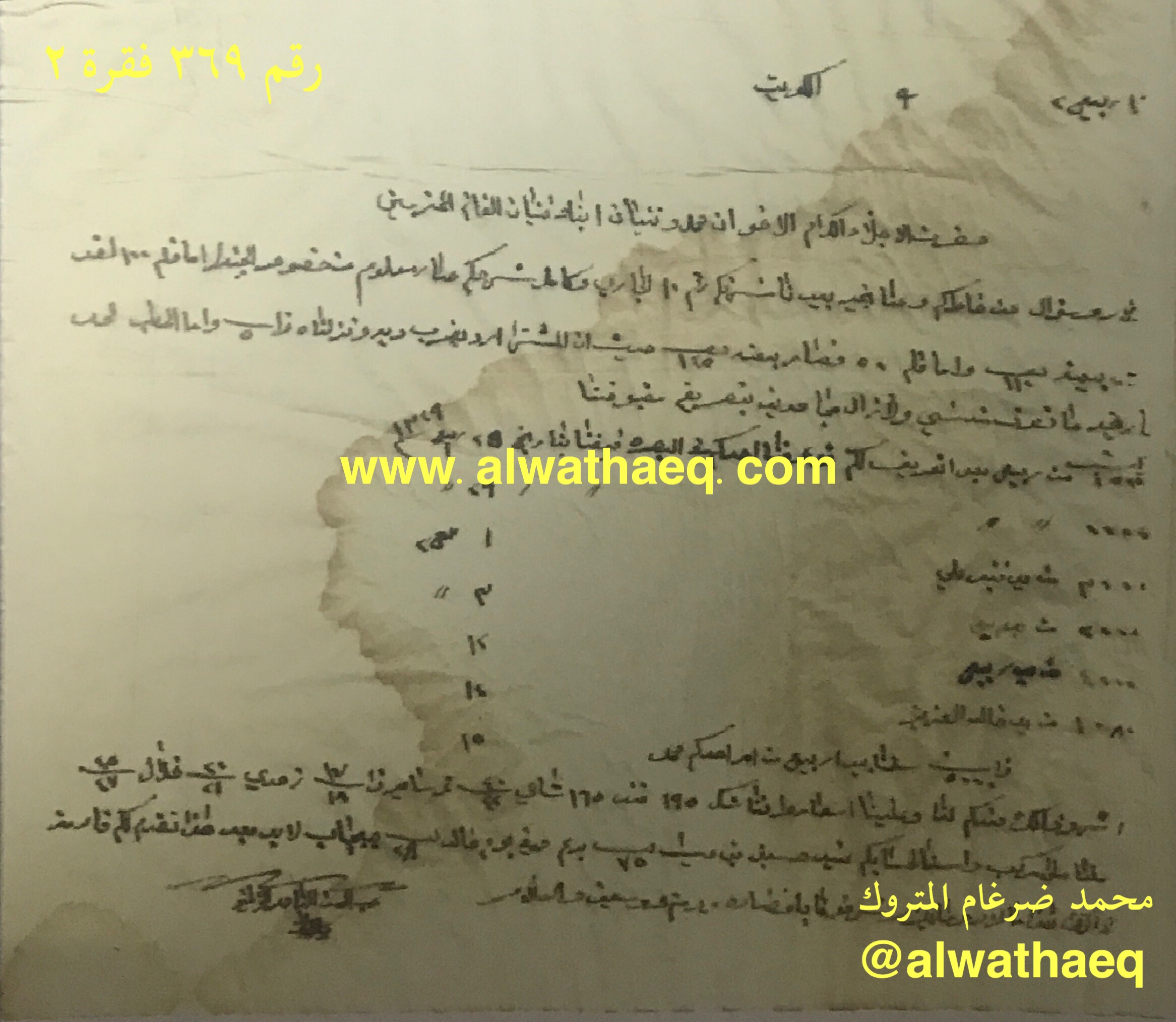 كذلك تبين لنا الوثيقة ان هناك شراكة بين المتروك والمزيدي في البضائع المذكورة ثلث للمزيدي وثلثين للمتروك