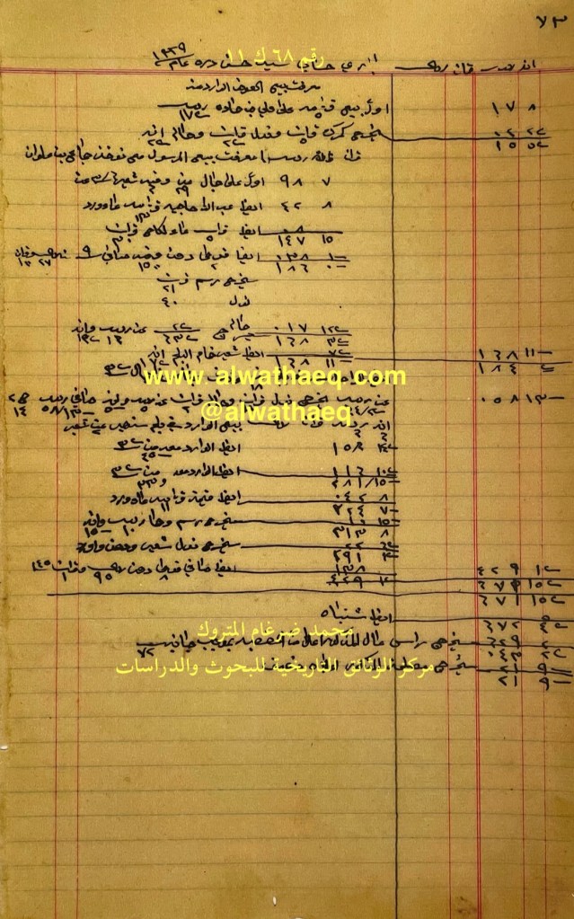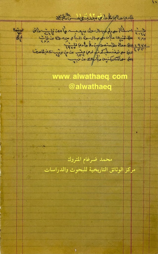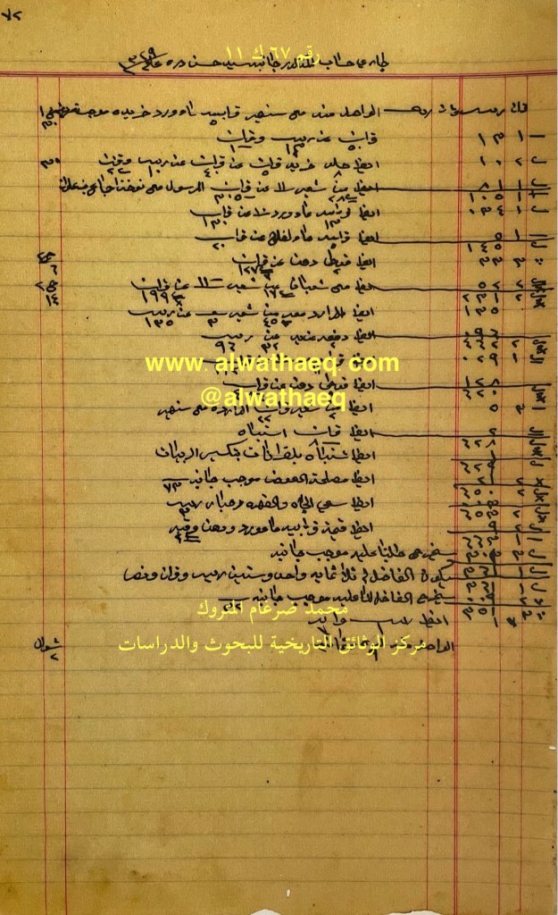 كشف حساب سنة ١٩١١ م من دفاتر التاجر محمد بن عبدالله المتروك