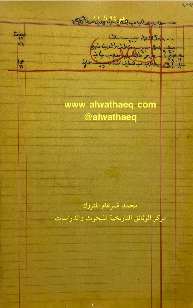 وثيقة رقم ( ٩٤ ك ١١ )🚩: . ✏️شرح وتعليق / محمد ضرغام المتروك . الوثائق التاريخية للبحوث والدراسات