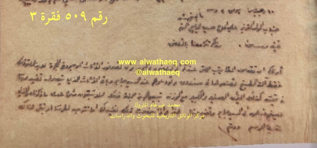 وثيقة رقم( ٥٠٩ فقرة ٣ )🚩: . ✏️شرح وتعليق / محمد ضرغام المتروك . الوثائق التاريخية للبحوث والدراسات