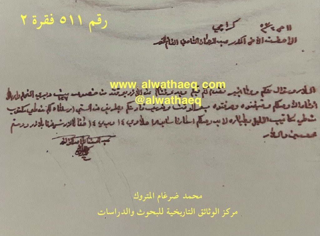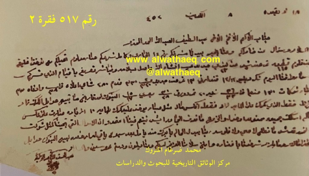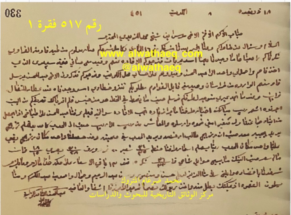 وثيقة رقم( ٥١٧ فقرة ٢ )🚩: . ✏️شرح وتعليق / محمد ضرغام المتروك . الوثائق التاريخية للبحوث والدراسات