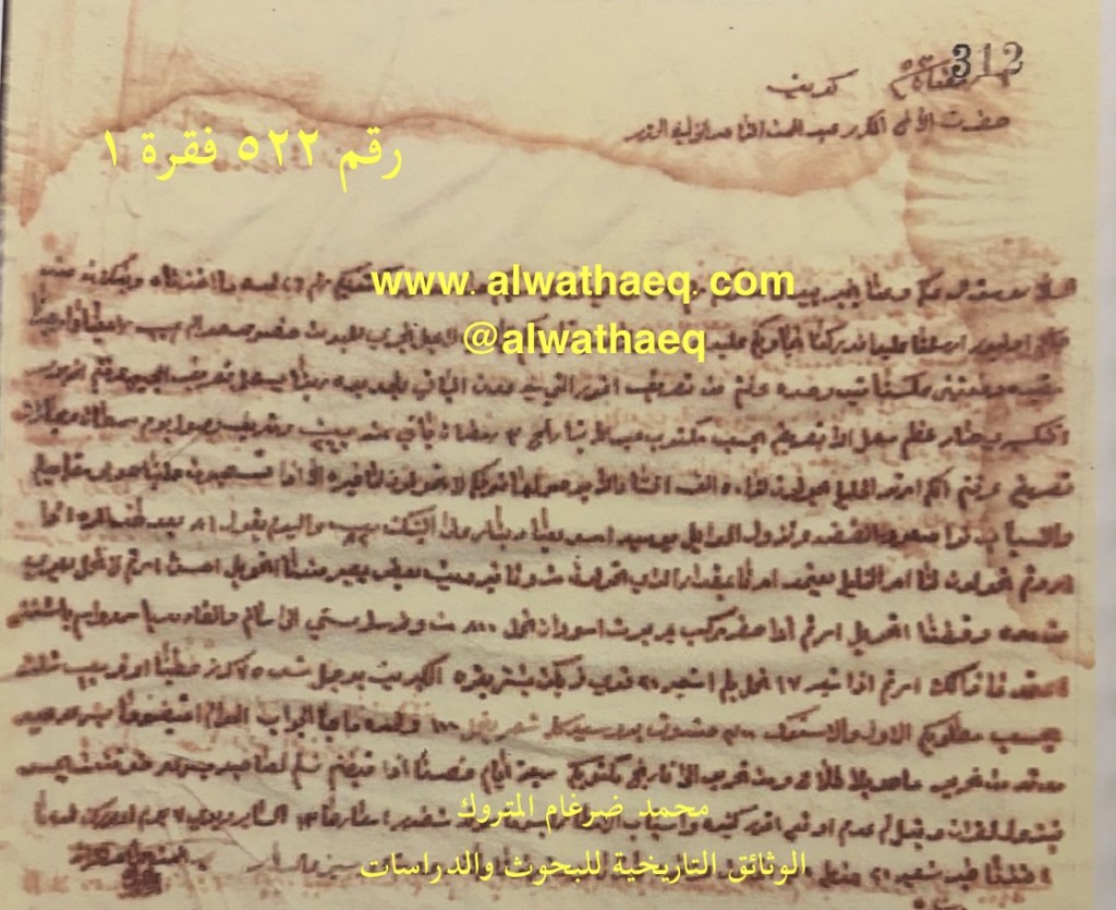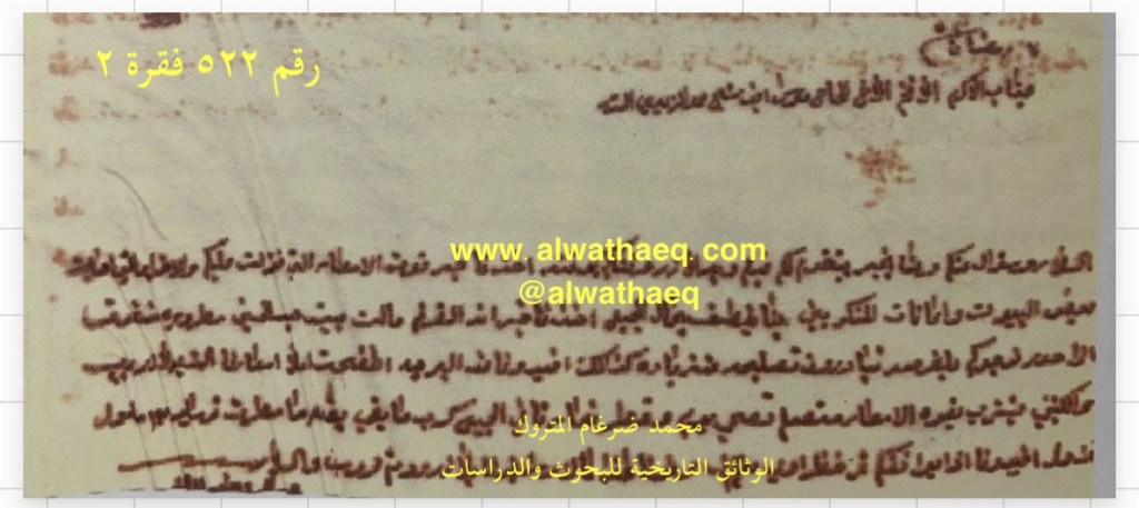 وثيقة رقم( ٥٢٢ فقرة ٢ )🚩: . ✏️شرح وتعليق / محمد ضرغام المتروك . الوثائق التاريخية للبحوث والدراسات