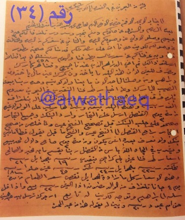 معاملات تجارية وفيها عبدالوهاب العثمان يخبر محمد المتروك بإقبال (البحرين وقطر) على شراء البيطة حيث كثر الطلب عليها تلك الايام.