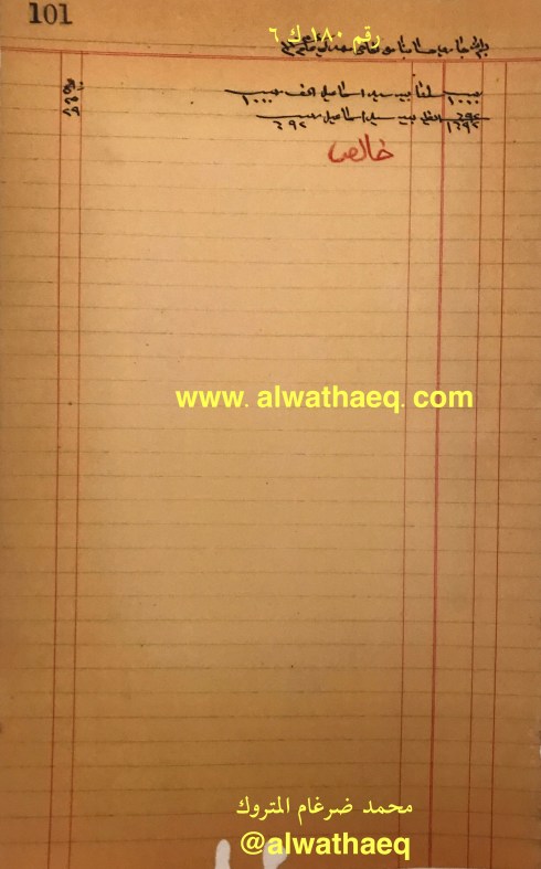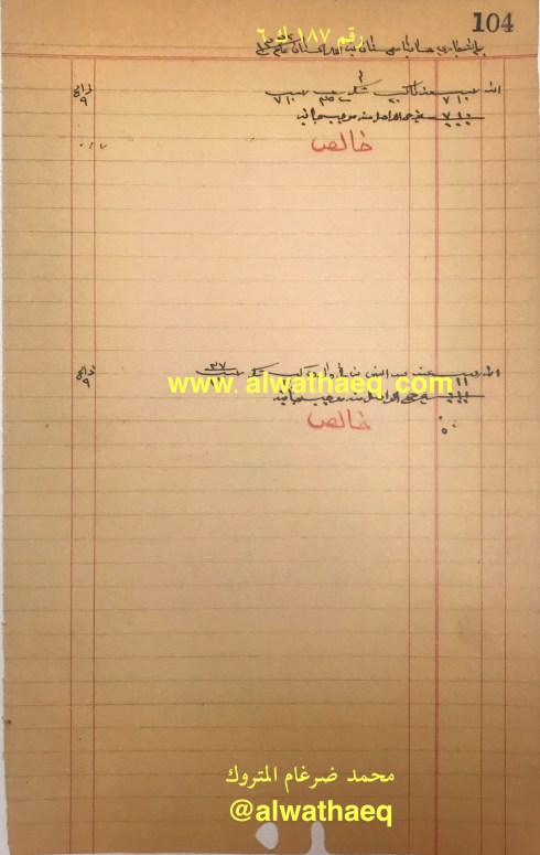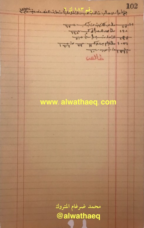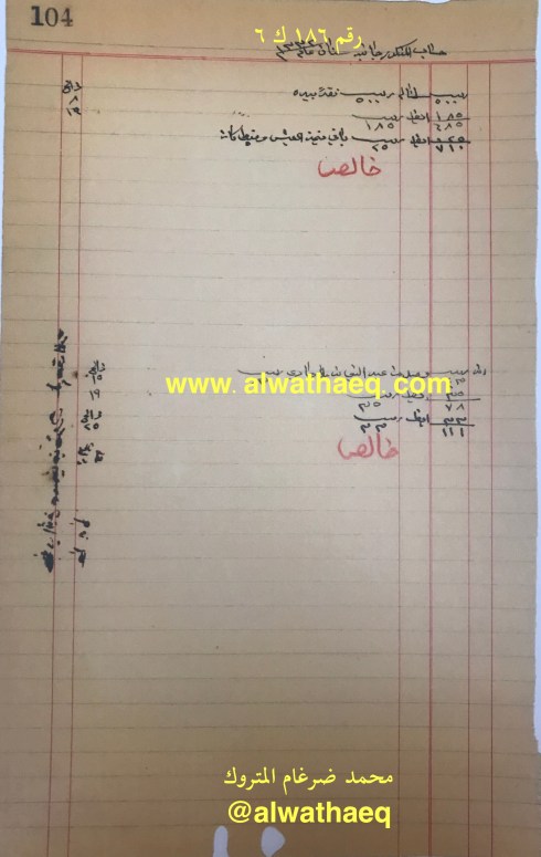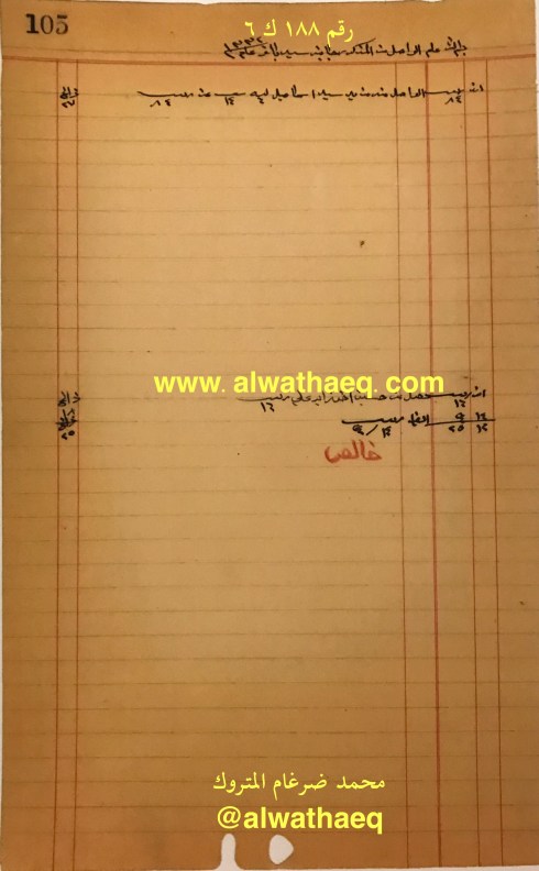 ١٠٠ كونيه / ٢٩٧ كونيه عيش منه ٥٠ كونيه مالت مشترا الذي من ولد اسحاق والباقي من عيش خالد / عيش النمونه / ١٠٠٠ كونيه على خالد / حنطه / ذهب / حلوا / شكر / قهوه / صبار