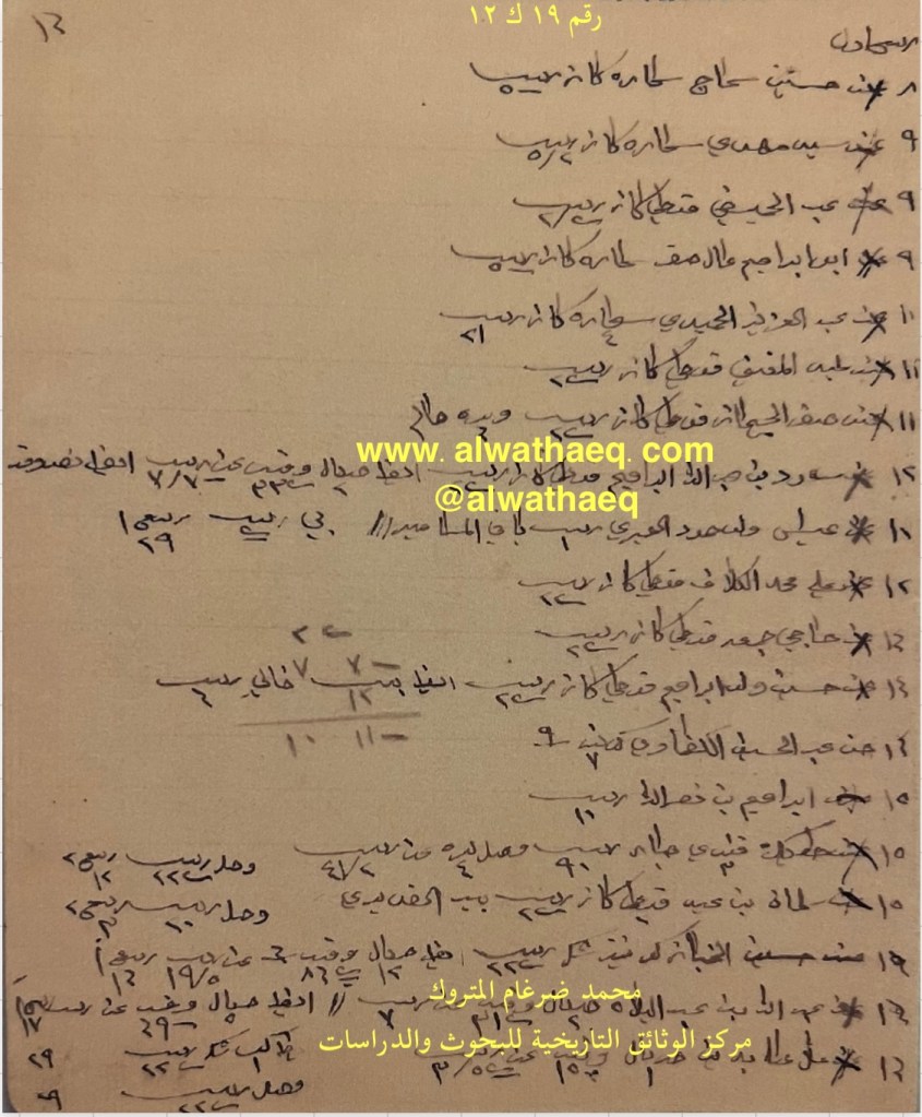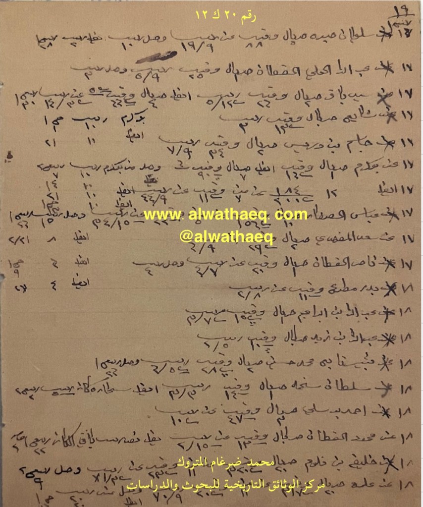 وثيقة رقم ( ٢٠ ك ١٢ )🚩: . ✏️شرح وتعليق / محمد ضرغام المتروك . الوثائق التاريخية للبحوث والدراسات