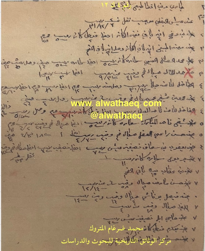وثيقة رقم ( ١ ك ١٢ )🚩: . ✏️شرح وتعليق / محمد ضرغام المتروك . الوثائق التاريخية للبحوث والدراسات